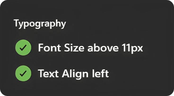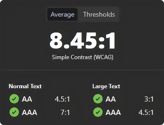 Design meets WCAG 2.1 AAA contrast and typography standards, which is above the goal.